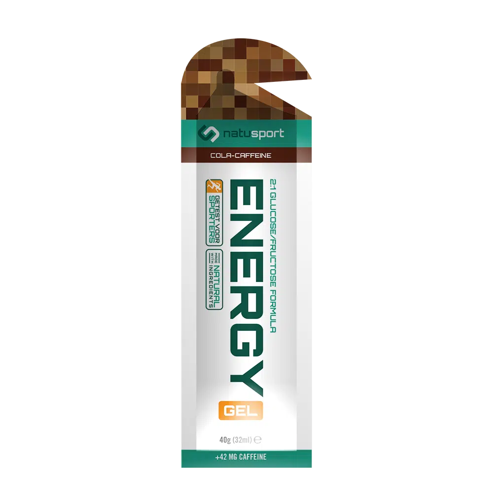 De Energy Performance Gel (Cola) bevat 42 mg cafeïne en 20 gram koolhydraten. In plaats van één grote dosis kun je meerdere kleinere momenten kiezen. Dit is vooral prettig voor sporters die gevoelig zijn voor cafeïne of die hun inname willen spreiden.